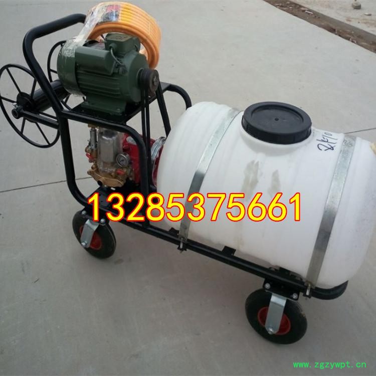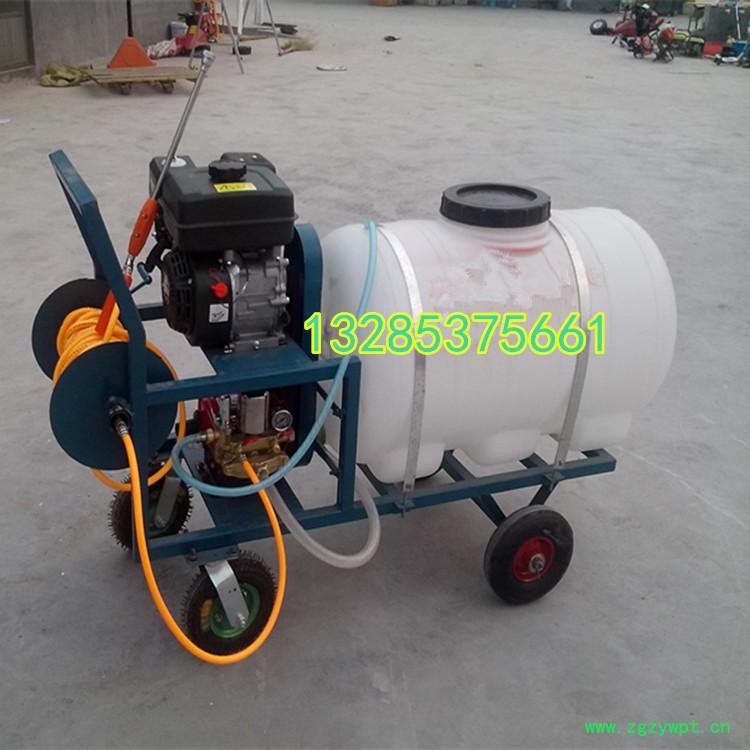其他配套:手推车前轮为万向轮,带刹车功能,后轮为大直径加宽充气轮胎,车前配粗管卷线轮,车后配细管卷线轮,带高压粗细水管各一盘,粗细喷枪各一个