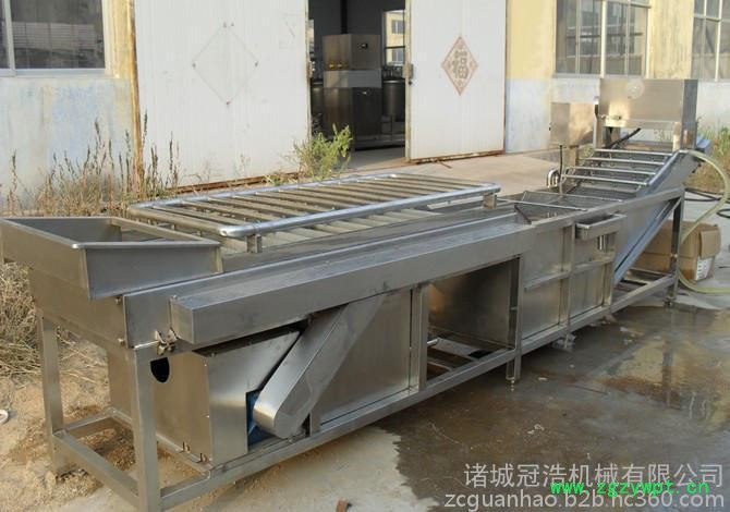 冠浩机械本设备适用于各种水果蔬菜的清洗,水力输送方式输送番茄等表皮较软的原果,卫生可靠,既可起到清洗作用,又节约电源。