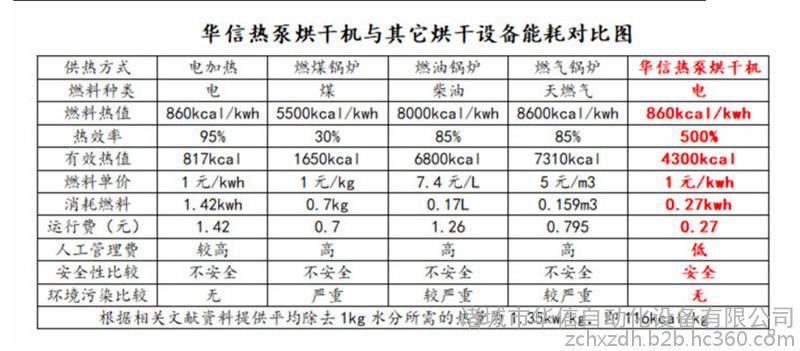 2)、高效节能:只需消耗少量的电能**可以在空气中吸收大量的热量,耗电量仅为加热器的1/3-1/4;同燃煤、油、气烘干设备相比,可节省75%左右的运行费用。1度电等于4度电。