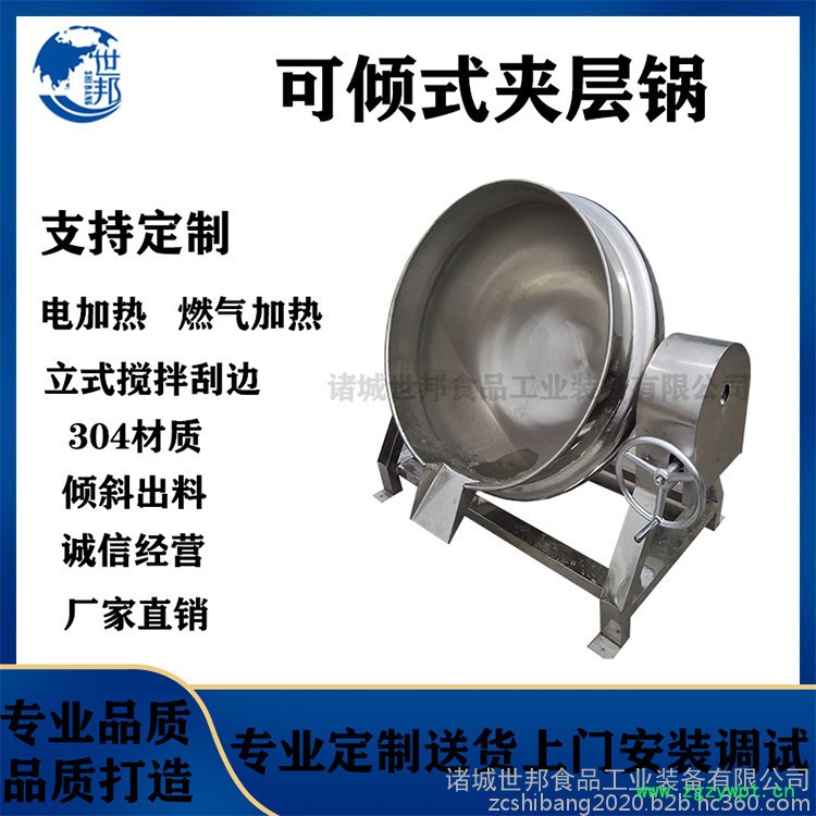可倾式夹层锅夹层锅又名蒸汽锅、蒸煮锅、夹层蒸汽锅。夹层锅广泛应用于糖果、制药、乳品、酒类、糕点、蜜饯、饮料、罐头、卤味等食品的加工,也可用于大型餐厅或食堂熬汤、烧菜、炖肉、熬粥等,是食品加工提高质量、缩短时间、改善劳动条件的良好设备。