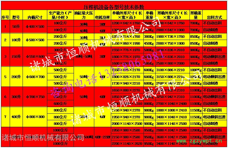 压榨机型号: