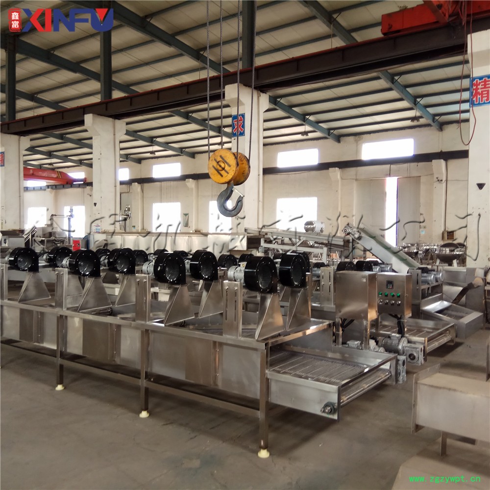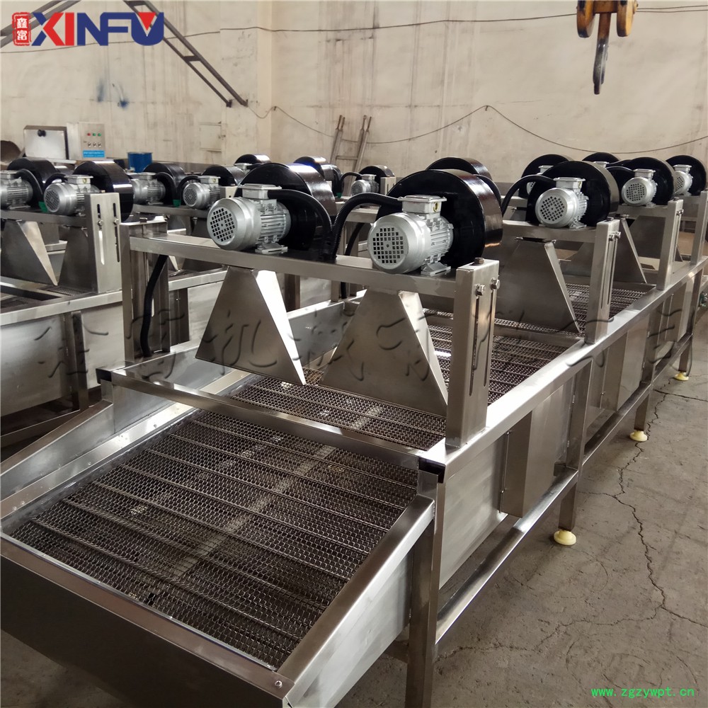 强流风干机由多个风机组成,主要应用于果蔬及软包装表面水分的吹干,吹干风温是常用温,有效保护了物料本身的色泽和品质。我们的设备配有变频调速电机驱动,调速范围更宽广。