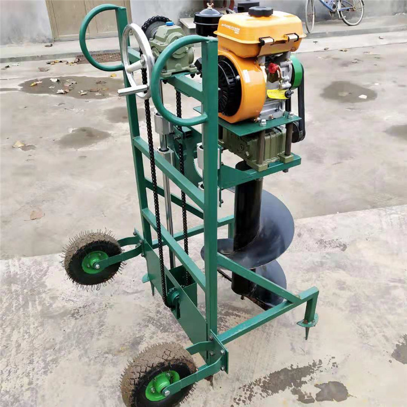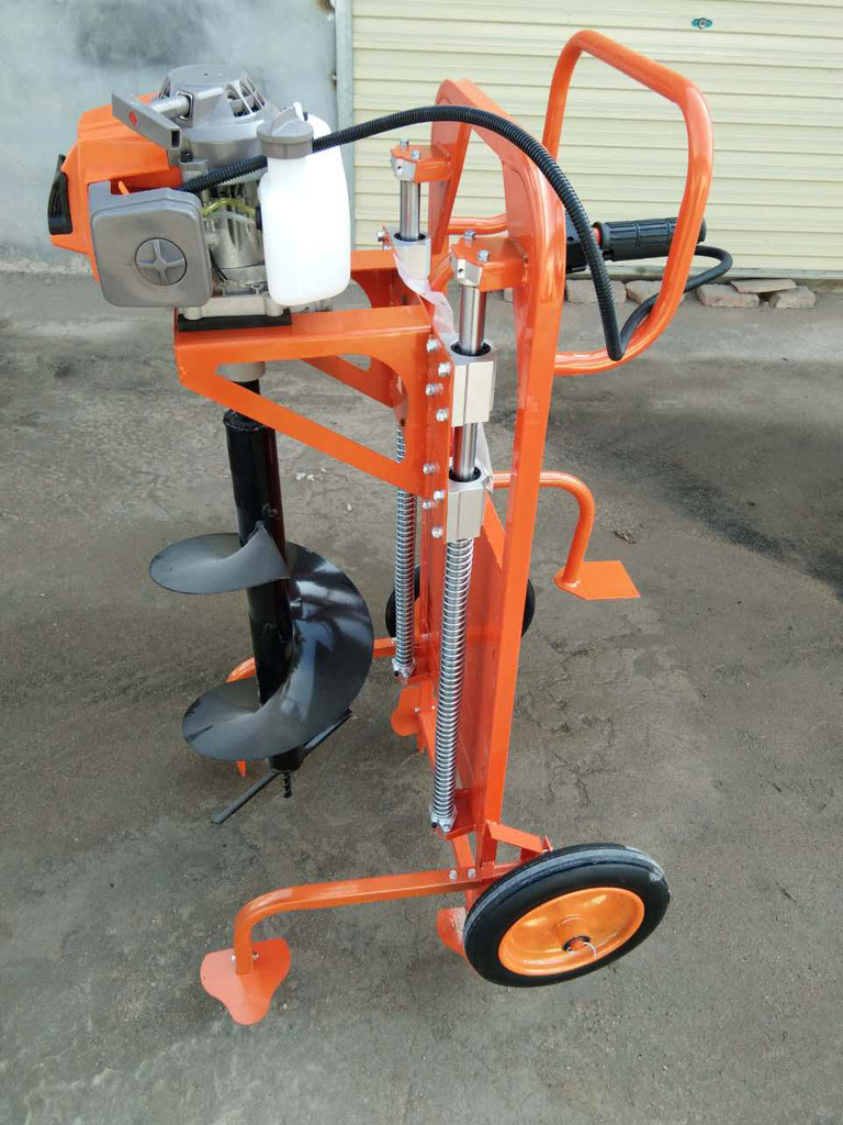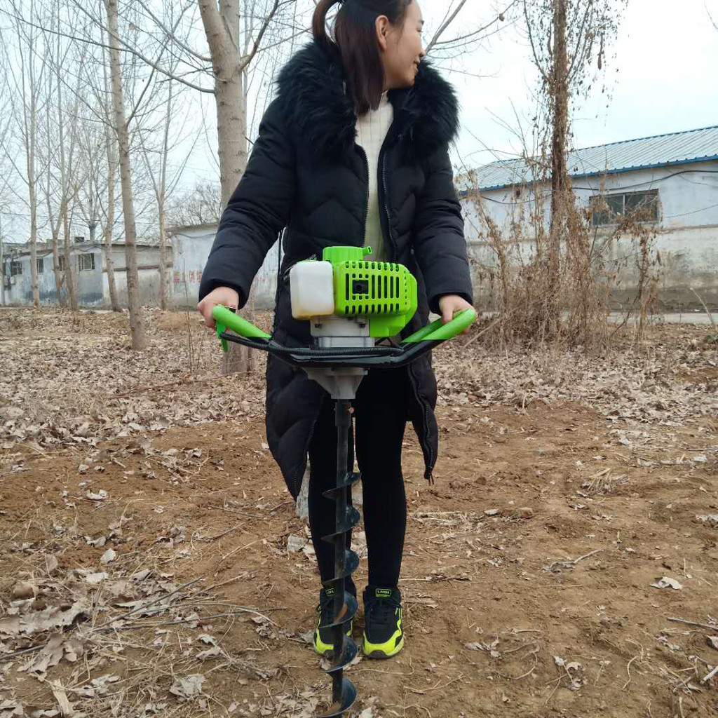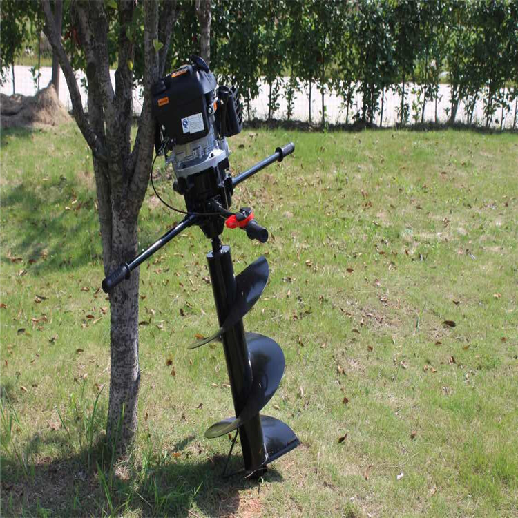 由小型通用汽油机,超越离合器,高减速比传动箱及特殊设计的钻具组成适合于<20度以下的坡地、沙地、硬质土地的植树造林或果树种植,道路两侧绿化植树等。苗木种植挖穴,畜牧围栏埋桩挖穴;葡萄胡椒种植埋桩挖穴;果树、林木施肥挖穴。挖坑直径:,200mm250 mm 300 mm 40mm。操作每小时不低于80个坑,按工作8小时计算,可以挖640个坑,是人工的30多倍。让人们从繁重的体力劳动解放出来,广泛应用于植树造林,栽种果林、篱笆、及秋季给果树施肥等。动力强劲有力,外形美观,操作舒适,劳动强度低,适合各种地形,效率高,便于携带及野外田地作业。