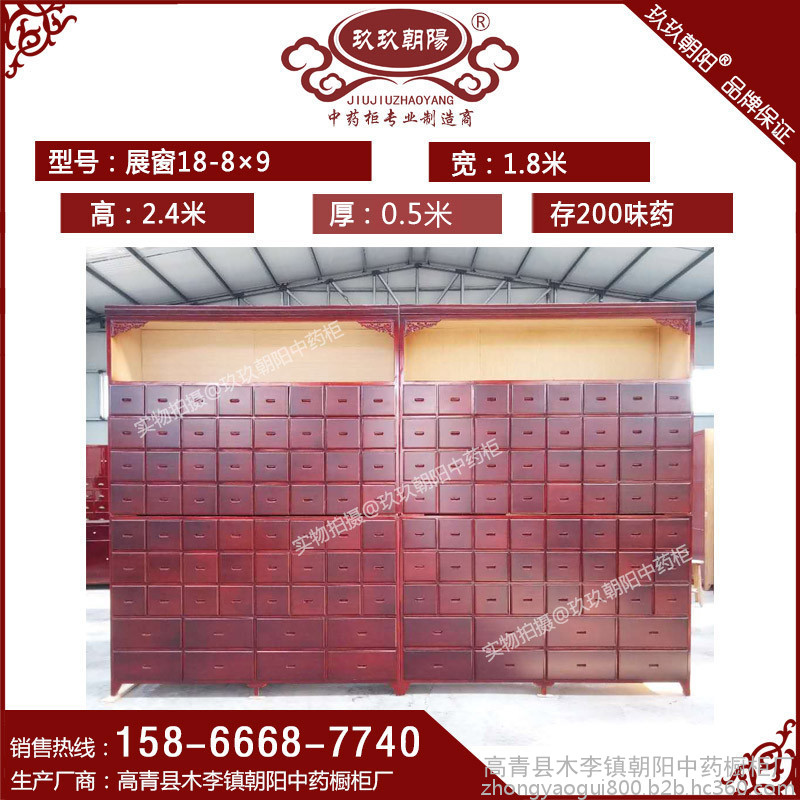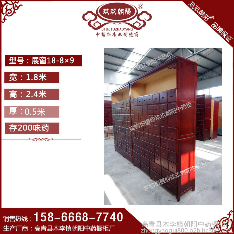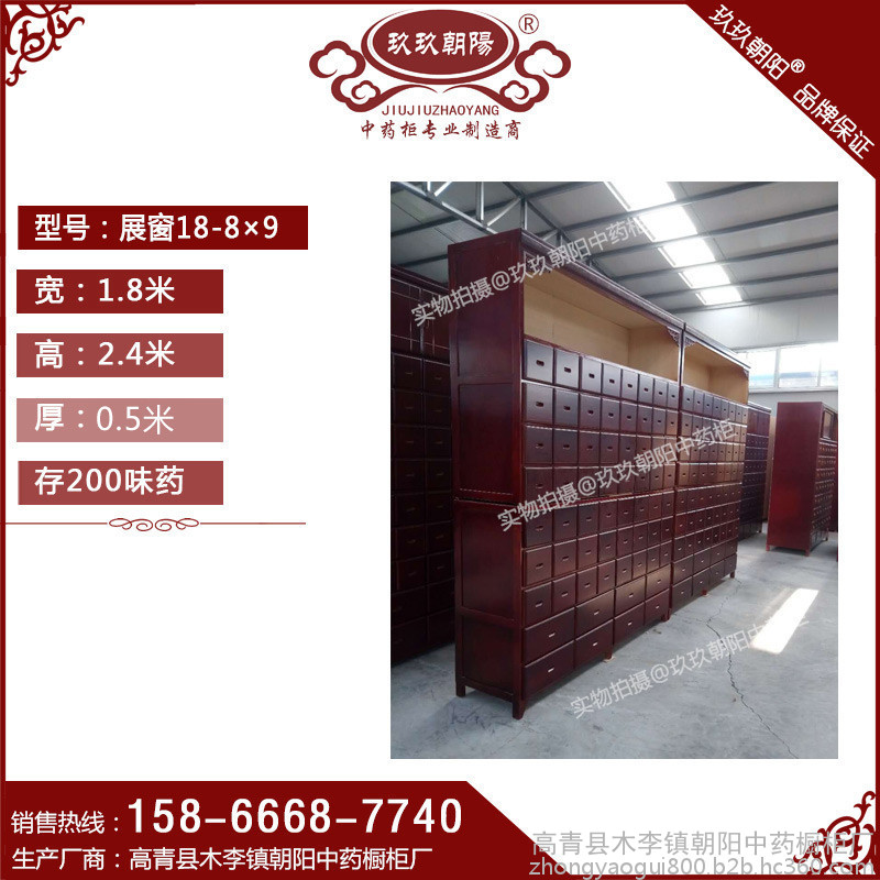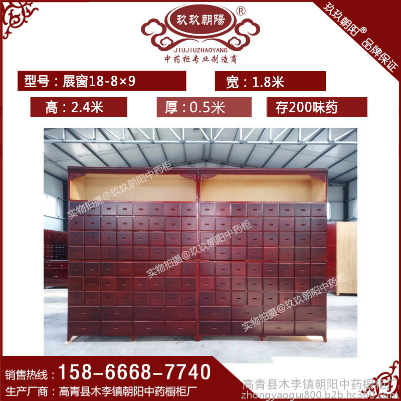 ??高青县木李镇朝阳中药橱柜厂(玖玖朝阳) 专业生产各种中药橱,中药柜,中药斗,中药架,中草药柜,中药饮片柜,中药柜台,中医药柜,中药斗柜,中药调剂台,中药操作台等,古色古香的风格融入现代制作工艺,经久耐用、不变形、不走样、防虫蛀、防腐蚀、防潮湿。采用榫卯结构,中间布局合理,不串味、不污染,先进的防鼠设计,安全卫生,健康环保聚酯漆喷涂八遍,明亮、高雅。