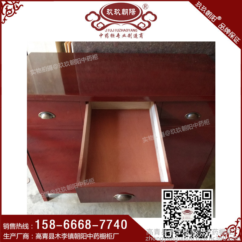 ??高青县木李镇朝阳中药橱柜厂(玖玖朝阳) 专业生产各种中药橱,中药柜,中药斗,中药架,中草药柜,中药饮片柜,中药柜台,中医药柜,中药斗柜,中药调剂台,中药操作台等,古色古香的风格融入现代制作工艺,经久耐用、不变形、不走样、防虫蛀、防腐蚀、防潮湿。采用榫卯结构,中间布局合理,不串味、不污染,先进的防鼠设计,安全卫生,健康环保聚酯漆喷涂八遍,明亮、高雅。致力于打造中药橱柜良心品牌!