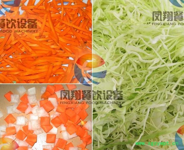 FC-305双变频切菜机、切葱机应用领域:可切长条状葱、大蒜、韭黄、芹菜、高丽菜、大白菜、鱼肉、豆干、菠菜、面根、瓜类等,另更换切刀盘可切根茎类得蔬菜,如竹笋、萝卜、马铃薯等切丝、切片。产量:500-800kg/hr产品尺寸:0-60mm(可调节)电源:220V两个电机:一个400W,一个750W尺寸:L 75×W 50×H 100cm重量:大约80kg