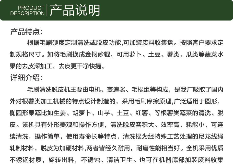 | 产品用途 | 土豆萝卜芋头等清洗脱皮去皮 |