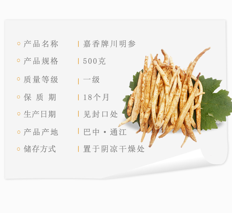 嘉香川明参500g盒装四川巴中南沙参干货泡酒料参鸡汤料包特产
