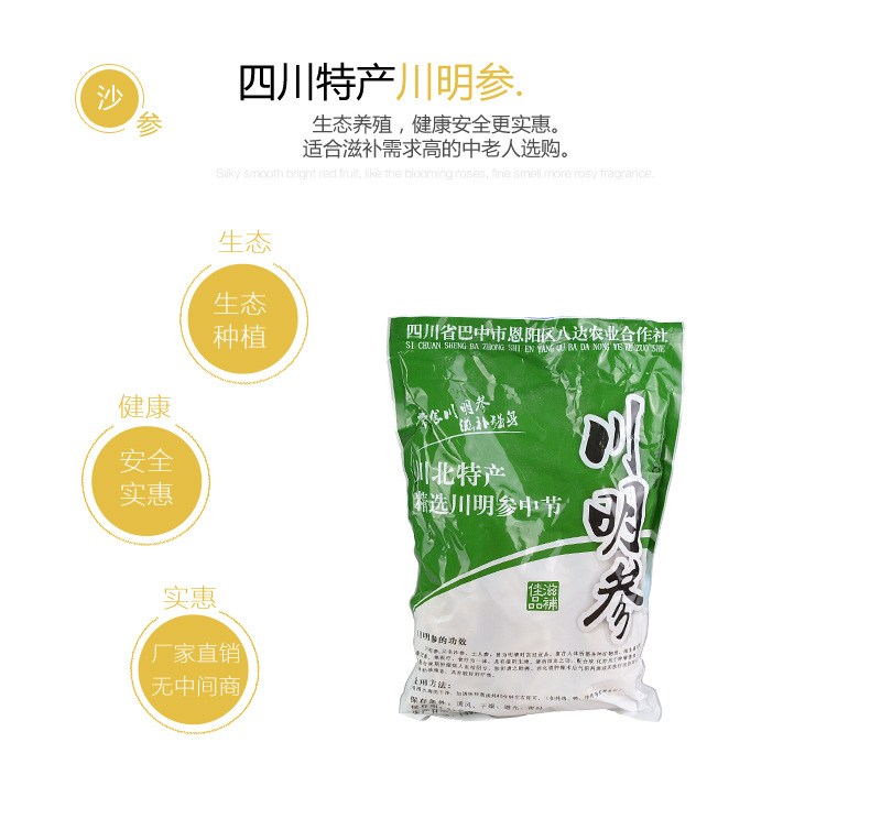 八达川明参500g真空装炖汤滋补食材无硫党参泡酒中材料南沙参