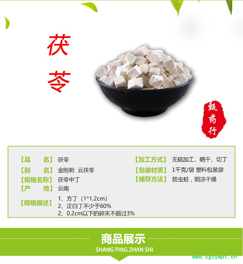 茯苓 茯苓中丁 一手货源批发1公斤装 产地云南 甄选药材行 为你真选好药材