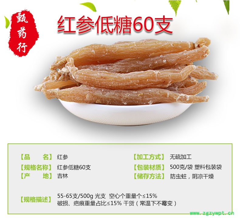 红参 红参低糖无硫60支 产地直销一手货源批发500克起 产地吉林 甄选药材行 为你真选药材