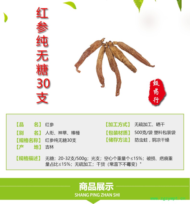 红参 红参纯无糖30支 产地 吉林省 500g