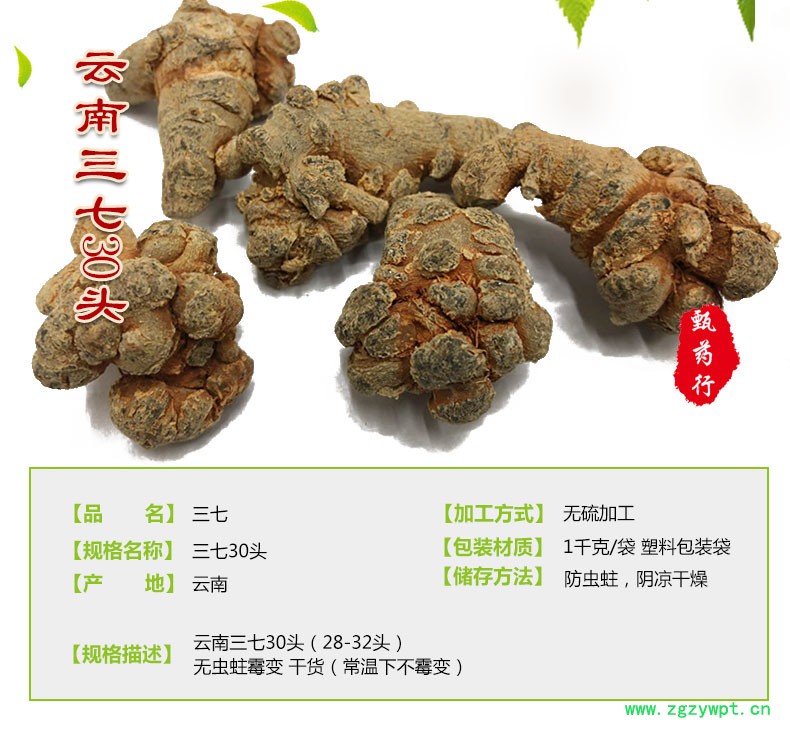 三七 30头 产地 云南省文山壮族苗族自治州 1公斤装