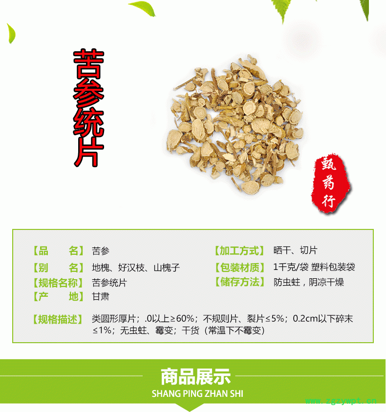 苦参 统片 产地 甘肃省 1公斤装