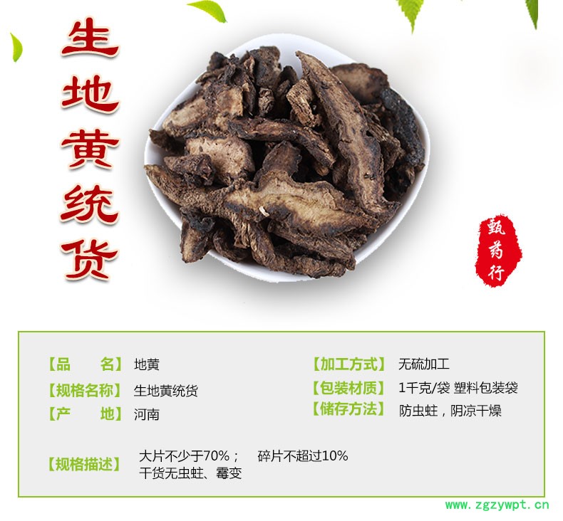 地黄 生地黄统货 产地 河南省 1公斤装