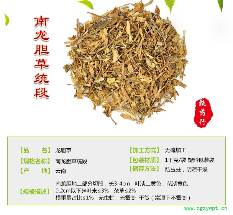 龙胆草 南龙胆草统段 产地 云南省 1公斤装