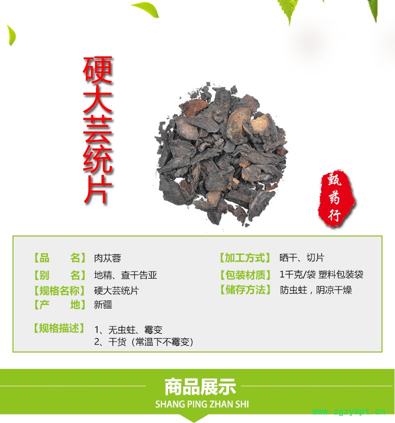 肉苁蓉 硬大芸统片 产地 新疆 1公斤装