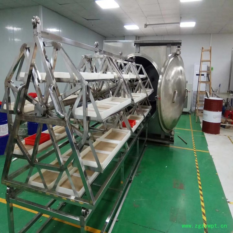 志雅公司生产的药丸微波真空干燥设备,整机采用304不锈钢制造而成,进料方式摒弃了传统固定料盘进料,采用推车进料一次性可以放置50公斤药丸,干燥时动态旋转,干燥加热均匀。