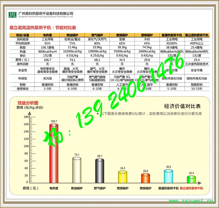 2、节能省电:YKP易立诺高温烘干机使用电能工作。烘干运行费用只有燃油干燥机的40%,燃煤干燥机的60%和电热加热设备的30%,比普通的干燥设备节能60%以上。投资费用回收快速。