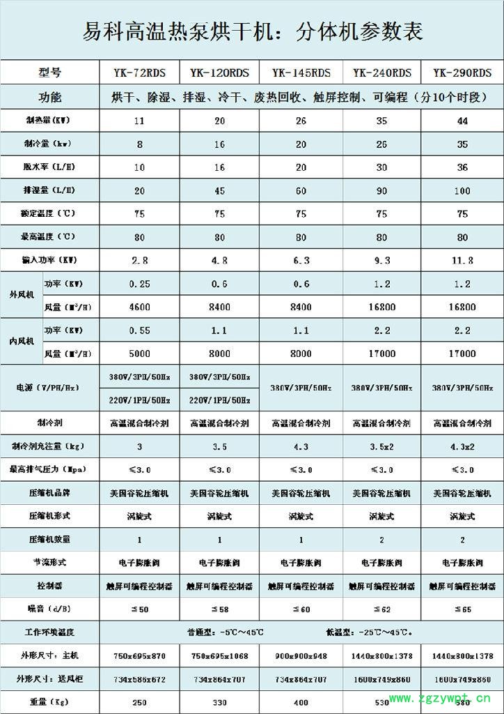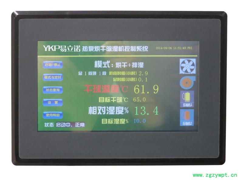 10、功能强大:机组可以烘干、排湿、高温除湿、恒温除湿、冷风干燥(特别适用易变质物料);可编程分10个时间段独立控制时间、温度、湿度,YKP易立诺热泵烘干机,没有什么“干”不了。
