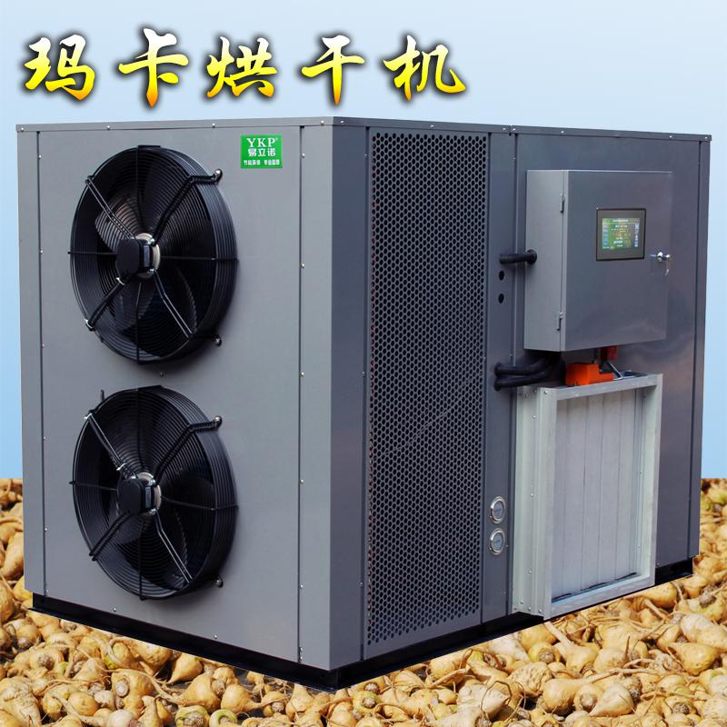 高温热泵烘干机是利用逆卡诺原理,吸收空气中免费的热量并将其转移到烘干库房内,实现烘干房的温度提高,配合相应的除湿排湿设备实现物料的干燥。热泵干燥机由压缩机——换热器(内机)——节流器——吸热器(外机)——压缩机等装置构成了一个制冷剂循环系统。冷媒在压缩机的作用下在系统内循环流动,它在压缩机内完成气态的升压升温过程(温度高达100℃),它进入内机释放出高温热量加热烘干房内空气,同时自己被冷却并转化为流液态,当它运行到外机后,液态迅速蒸发吸热再次转化为气态,同时温度下降至零下20℃——30℃,这时吸热器周边的空气**会源源不断地将热量传递给冷媒。冷媒不断地循环**实现将空气中的热量搬运到烘干房内加热房内空气温度达到干燥物料的目的。