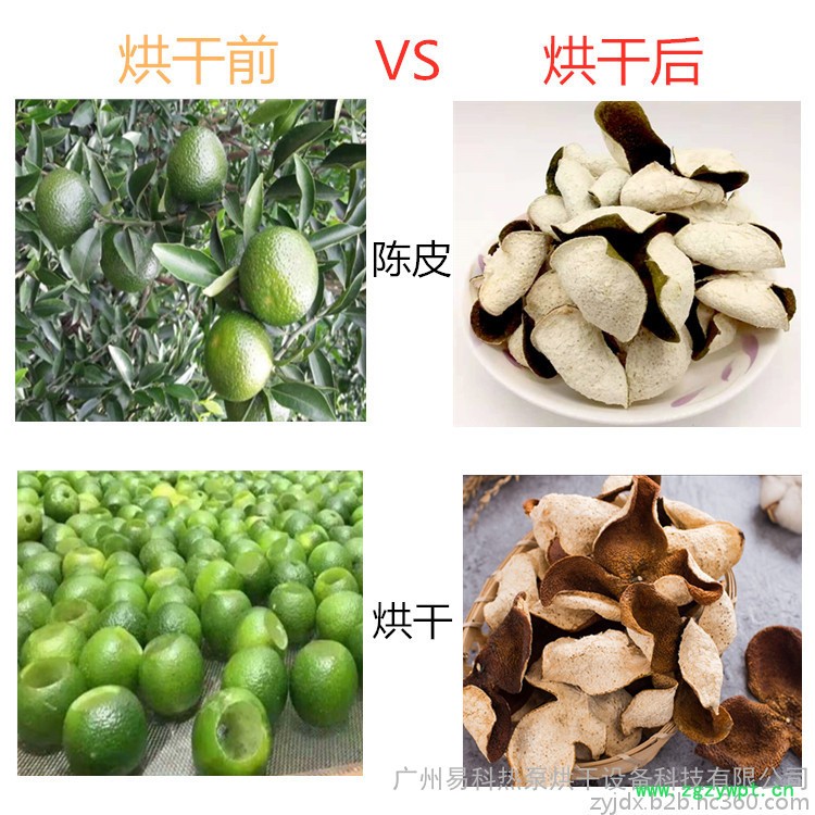 广州易科热泵烘干设备科技有限公司是专业研发、制造、销售和安装高温热泵烘干除湿机组的厂家,因传统的陈皮烘干方法采用的是晾晒或者用土制烘房进行烘干,晾晒时间较长,且受天气影响, YKP陈皮烘干机采用先进的高温热泵烘干技术,可对烘干温度进行分段控制,不同的时间设定不同的温度段,通过不同温度段烘干出来的陈皮颜色好,品质高,营养成分不流失。