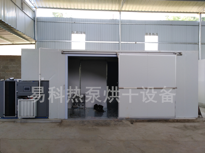 2、烘干房:主要是用来摆放要烘干的物料,采用10cm聚氨酯保温板,填充密度40公斤,保温效果更好,同时也可以避免热量的流失;