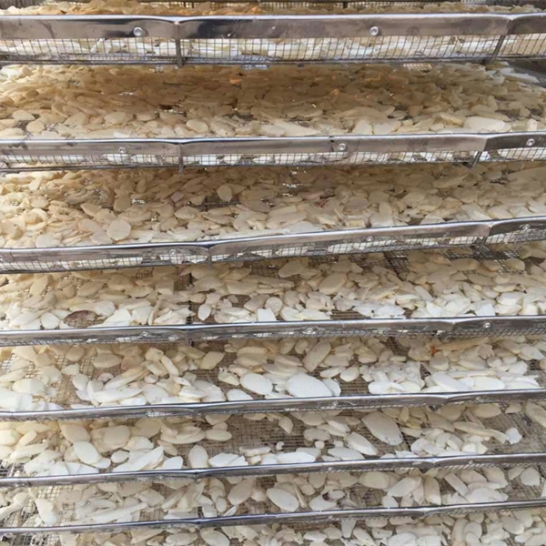1、山药清洗、去皮、切片:将需要烘干的山药清洗去皮后,切成厚薄均匀、大小一致的山药片,过水处理,沥干水分后**铺放到不锈钢的物料车架上,注意不要起堆,片与片之间要留有一定的间隙。根据不同的烘干要求,设置好铺料厚度、烘干速度、温度等参数,开始进行山药的烘干工作。
