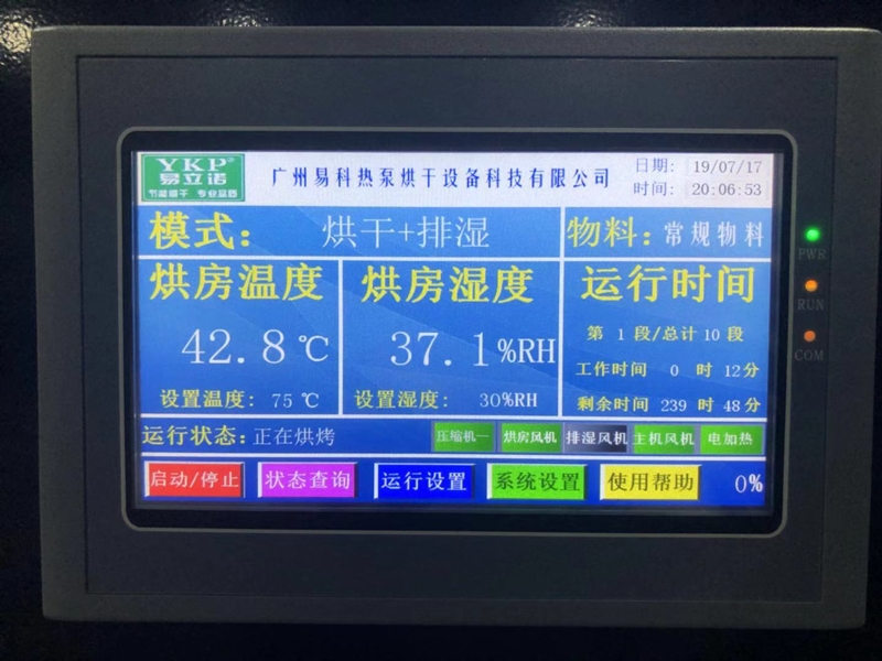 6、PLC触屏版中央控制器,分时段编程,可以烘干、排湿、封闭除湿、调湿、冷干满足各个行业的不同烘干要求。存储的烘干工艺让你的物料烘干更简单。
