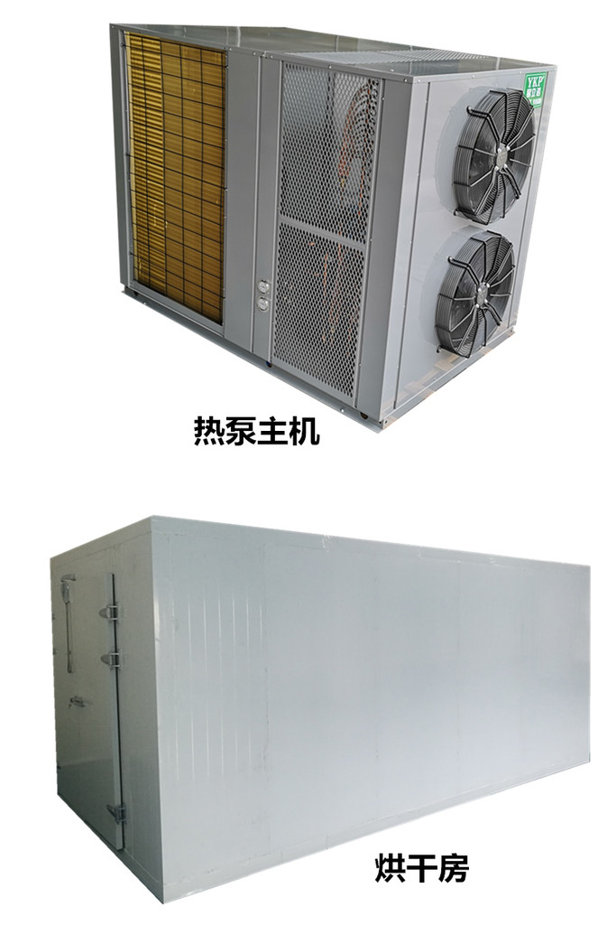 1、热泵主机(加热系统):利用输入很少的电能吸收空气中的免费热量,用来烘干物料;