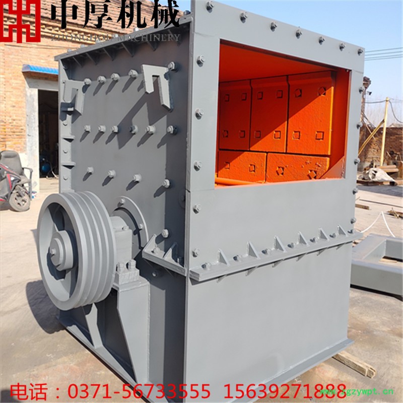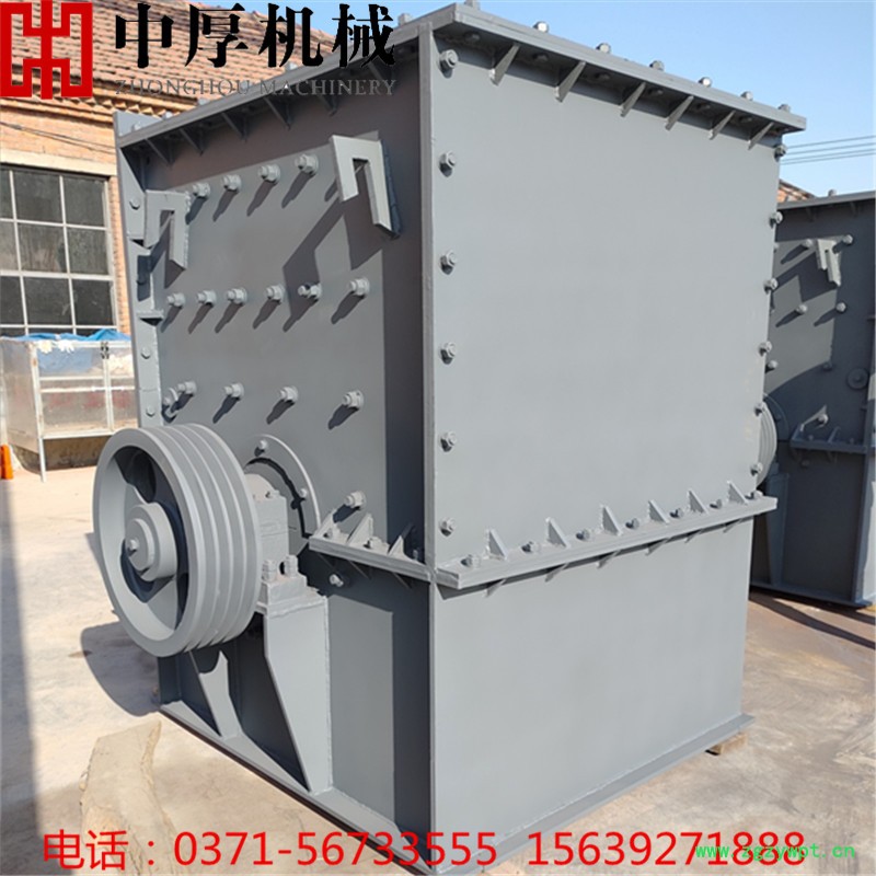 方箱式破碎机又叫方箱破、方箱重锤破碎机。是中厚机械公司多年来的研发与优化设计,制造生产出了新一代破碎设备,方箱式破碎机是用锤头(板锤)对石料进行打击破碎的,箱式破碎机单个锤头重量大、转子转速高、锤头转动惯量大,充分体现了以大破小、以重碎轻的优势,且具有对大块石料进行蚕食式破碎的能力。减少了锤头在破碎腔内的磨损,使锤头的寿命提高4—6倍,每副锤头可破碎石料3—4万吨,使二级破碎变成一级破碎,破碎出的物料粒型好。方箱破碎机具有整形功能,且产品成立方状、堆积密度大,生产过程中,石料能形成保护底层,机身无磨损,经久耐用。全新换代升级产品,更长使用寿命,更少易损件,更大产量,充分实现了破碎技术的重大突破。广泛用于破碎各种脆性的物料。如铜矿、锌矿、煤、盐、白亚、石膏、明矾、砖、石灰石、青石、页岩、,其物料的抗压强度不超过300兆帕,湿度不大于30%。