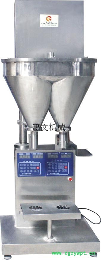 | H-A2型自动定量包装机是通用型粉剂或者小颗粒物料的定量包装设备 请仔细看说明,咨询厂家,签订合同后可下单 技术特点: 1.不锈钢材质,触摸屏PLC显示(或单片机) 2.两个充填和计量单元,一台等于两台普通机型,并且可以同时完成不同规格的包装 3.螺旋下料,光电控制技术 4.电子称重反馈误差,密度自适应 5.重量超差报价,系统自动修正 6.自动设置参数断电保护. 7.可用于农药、兽药、添加剂、调味品、淀粉、食盐、洗衣粉、等粉末物料的定量包装。 技术参数: