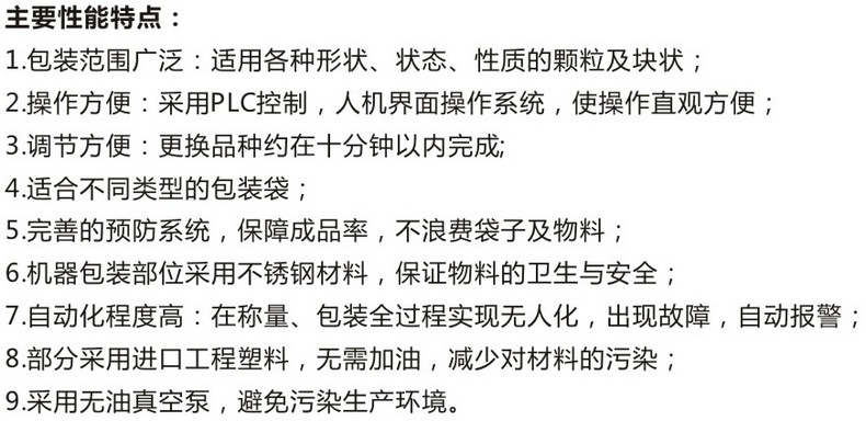 配套设备:组合称 Z型提升机 工作平台 给袋式包装机