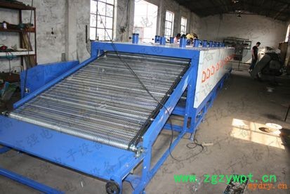 网带烘干机是一种由电加热、蒸汽加热、热风加热进行加热的批量、连续式生产利用钢网作为传输带运载物料进行连续烘干的干燥设备。主要将压制的成品球通过输送机直接输送到平板输机上,通过平板输送机上端的刮板将成品球匀布在烘干机上,提高球的透气性,达到烘干效果。