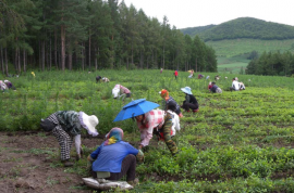 初春时节,走进镇坪县城关镇联盟村六组,村支书岳忠术正带领30多个村民抢抓农时栽种大黄。挖土起垄、栽植根茎、回填壤土、浇水保墒……田间地头一片繁忙景象。平均海拔1100米以上的坡地里,大黄茎块有序定植,整整齐