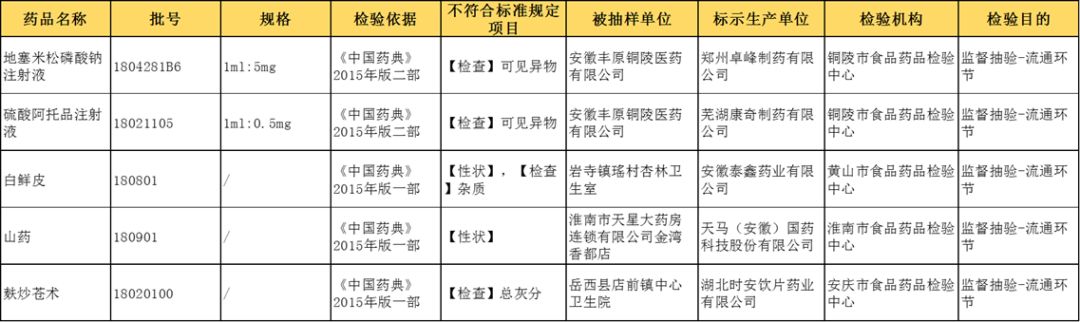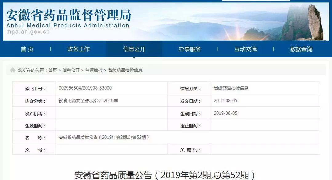 8月5日,安徽省药监局发布了2019年第2期药品质量公告,公布5批次不合格药品,其中3批次为中药饮片。