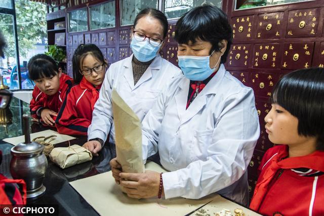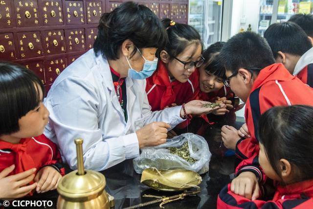 河北省邢台市柏乡县南马中心小学学生走进中药店,了解中医药器皿、认识中药名称、学习捣药煎服方法等,感受传统中医文化魅力。