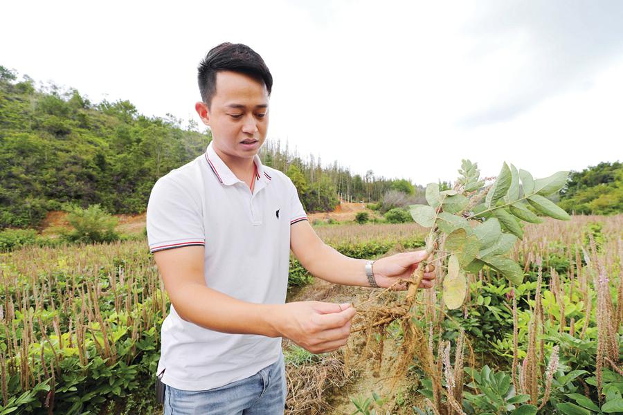 张智康与中药材的结缘始于3年前。张智康退伍后进入惠东县公安部门工作了几年,党的十九大提出实施乡村振兴战略后,他萌生了回农村发展的想法。“但是种什么,当时还没有方向。”张智康说,后来在家里一位长辈指导下,结合安墩的地理和气候环境,他选择了中药材种植。