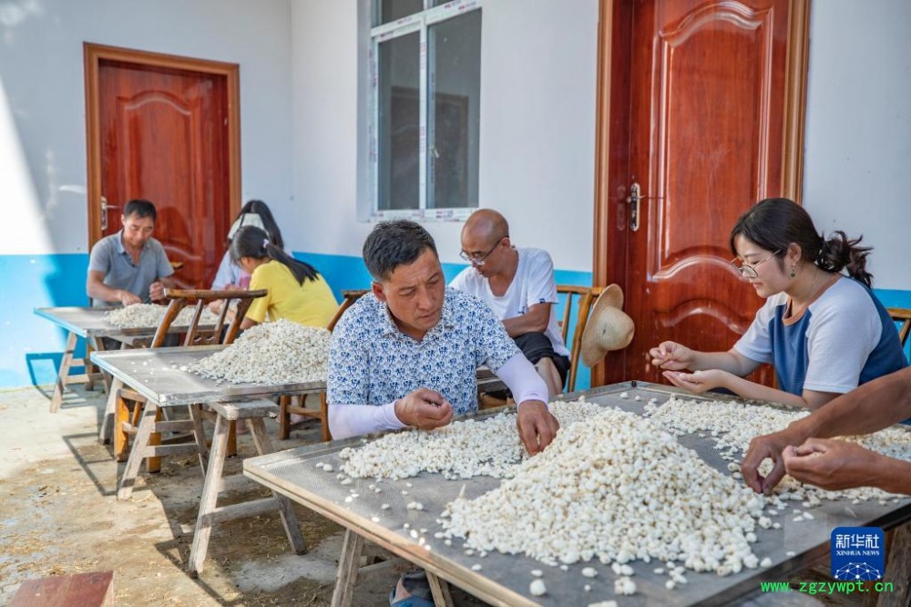 7月14日,在重庆市巫溪县兰英乡西安村,村民对贝母进行筛选。