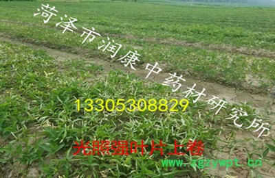 在半夏种植地块中,出现大范围叶片上卷成筒状,主要原因是由于光照强引起的。根据菏泽市润康中药材研究所(山东)研究观察,在半夏种植中,光照、温度、水分这三者有直接关系;5厘米的地温低于30度、土壤含水量在20-25%范围内时,即使强光照也能适应,只有部分半夏叶片出现上卷枯萎,大部分能够正常生长。另外,半夏品系的不同对光照、温度、水分的适应能力差别较大,狭三叶半夏适应能力较强,其它叶形的半夏适应能力差。