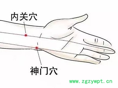症见精神疲倦、失眠多梦、乏力、气短、头晕眼花、脸色发白、嘴唇颜色淡、胃口较差。在忧思过度或者工作劳心以后,心悸就会加生。可选用神门穴、极泉穴进行调理。神门穴位于手腕内侧,小指边的腕横纹上。可每天早晚各按揉双侧穴位两三分钟。极泉穴位于腋窝顶点,在腋窝内的两条筋脉之间。把胳膊抬起来,用一只手的食指摸到极泉穴稍微加力,有酸胀感觉时,然后向旁边拨动,一般会有麻感顺着手臂向下传导直到手指,可连续弹拨另一侧的穴位,每日早晚各1次。神门、极泉是心经的要穴,两穴配合可起到补心养血、安神定志的作用。