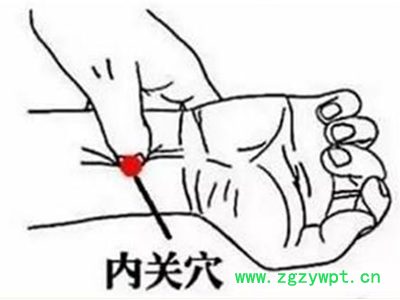 具体方法:左手拇指点按右手内关,适度下按半分钟,再顺逆时针各按揉100次,有酸、麻、胀、痛感觉为佳。再换右手拇指按左手内关。每日2~3次。用大拇指或中指反复按揉足三里3分钟,左右穴交替进行,按揉用力要持续、均匀,以出现酸胀、发麻等感觉为宜。每日2次。