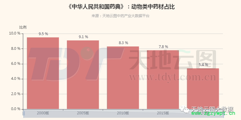 图1:5个版本《中国药典》中动物类中药材占比
