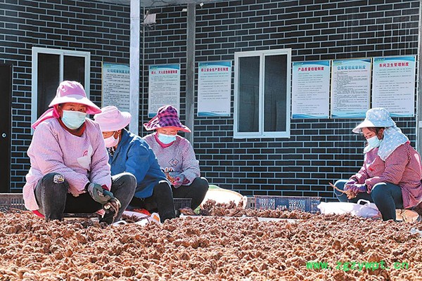初春时节,怒江傈僳族自治州兰坪白族普米族自治县河西乡白龙村村民李应成和家人忙着在庭院晾晒附子。