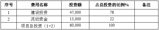 图表4  项目总投资汇总一览表(单位:万元人民币)