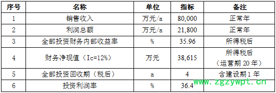 项目达产后,年销售收入80,000万元,利润21,800万元,投资回收期4年(税后,含建设期1年),投资利润率36.4%。