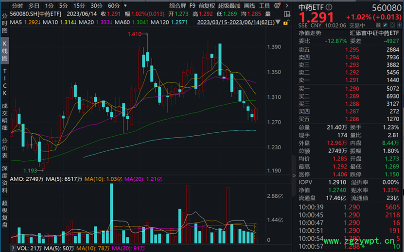 主流ETF方面,中药ETF(560080)涨超1%,开盘30分钟左右成交额超2700万元。