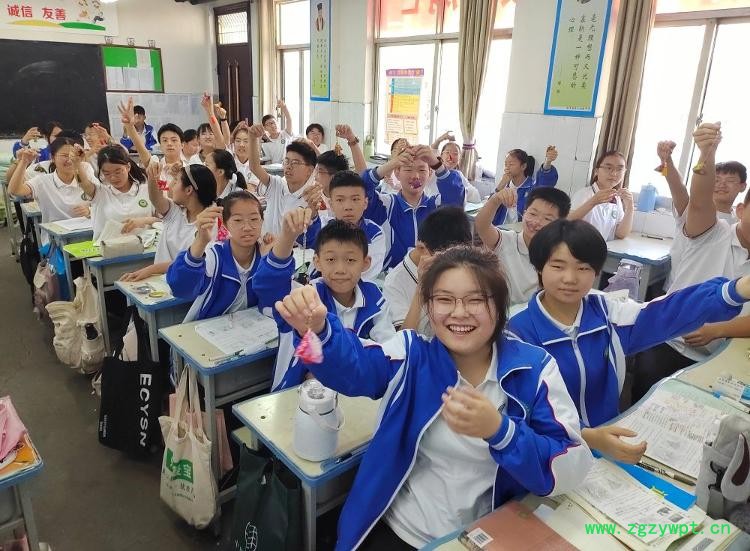6月20日上午,河南省驻马店市西平县第二初级中学学生在展示端午香囊。新华社发(吕晓 摄)