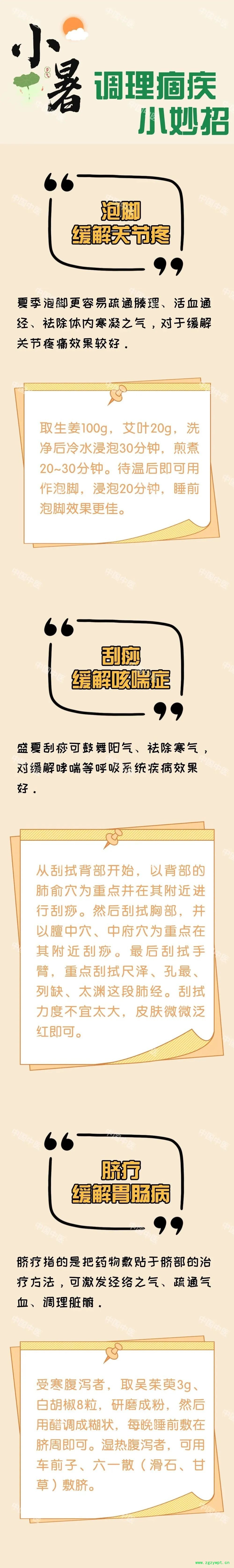 小暑大暑,上蒸下煮,明天即将迎来小暑节气。这时候阳热下降,氤氲熏蒸,水气上腾,湿气充斥,“湿热交蒸”到达顶点。暑湿之邪极易在人体肌肤腠理开泄之际,乘虚由外入内,阻遏气机,耗津灼液,损伤阳气,引发中暑、心脑血管疾病及肠道传染病等。此时如何养生?中医为大家划重点!
