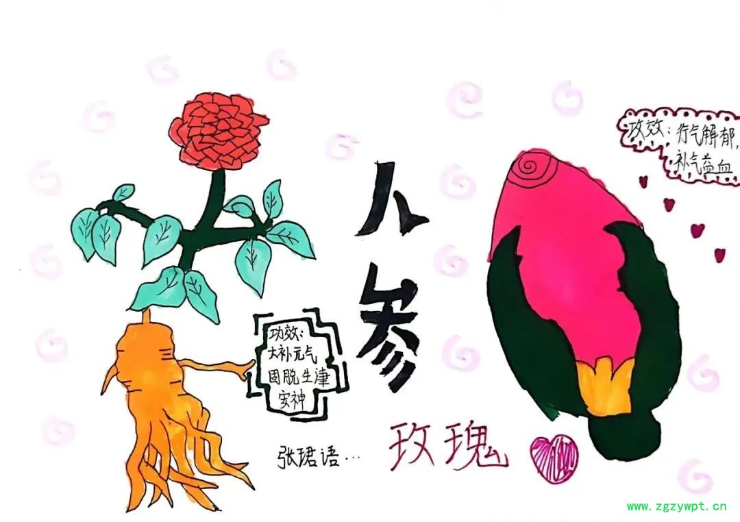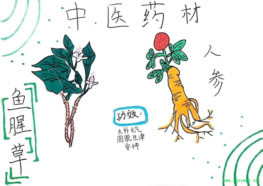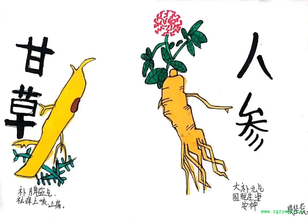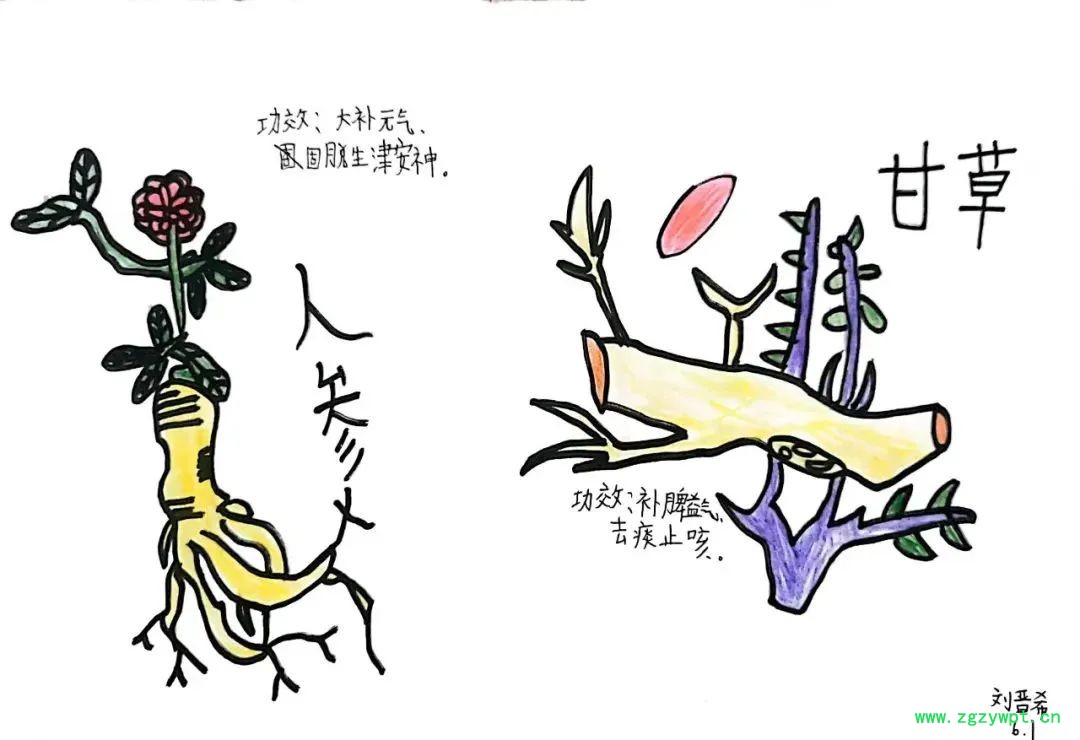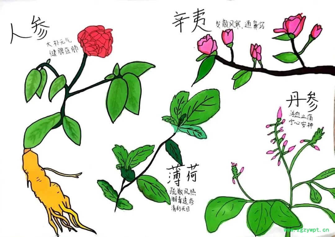 中医和绘画自古相融相通,古代中医药师常用画笔纪录中草药的形与色,同学们用手中的画笔,将中医药知识跃然于纸上。